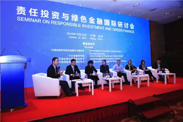 2016年10月22日,责任投资与绿色金融国际研讨会在京举行。本次研讨会由中国金融学会绿色金融专业委员会、中证金融研究院、中国证券投资基金业协会和中国保险资产管理业协会联合主办,商道融绿承办。来自国内外基金、保险资管、证券、指数、评级和其他市场机构的二百多人参加了会议。